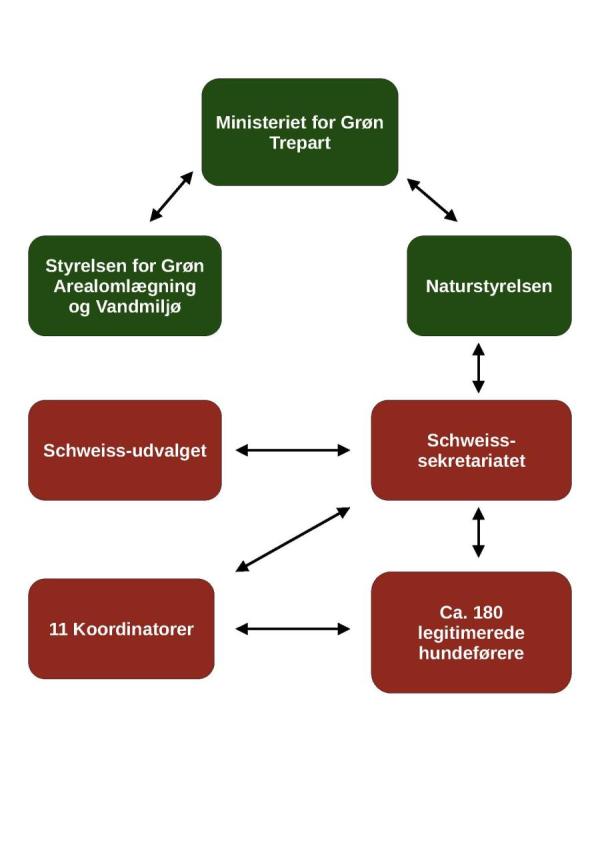 Schweiss-registret udspringer af jagtlovgivningen, og hører derfor til i Styrelsen for Grøn Arealomlægning og Vandmiljø, der er statslig myndighed for jagt- og vildtforvaltning. Det er således Styrelsen for Grøn arealomlægning og vandmiljø, der er ansvarlig for Schweiss-registret og stiller økonomiske ressourcer til rådighed for Schweiss-registret. Naturstyrelsen varetager, efter aftale med Styrelsen for Grøn arealomlægning og Vandmiljø, opgaven med Schweiss-registret.